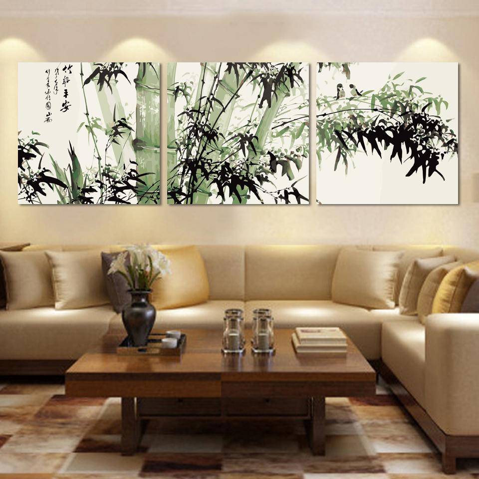 Если располагаете картины над диваном. То не вешайте их слишком высоко, достаточно отступить от спинки 25-30 см.