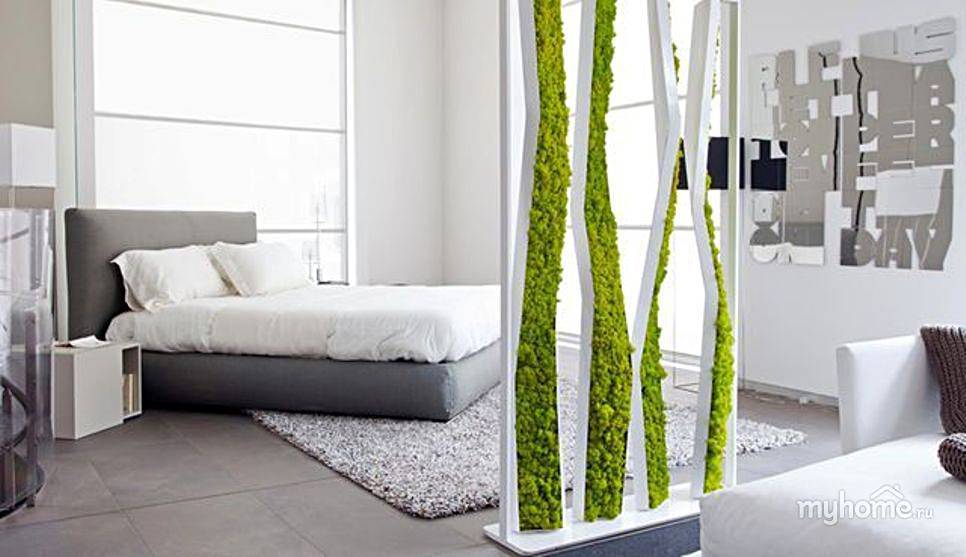 Передвижная фитостена. Применяется в виде самодостаточной ширмы или даже двери при использовании зонирования территории. Из-за специфики применения декора, срок его эксплуатации короче, чем вертикального озеленения. Однако такая изгородь может оживить любое жилище и вызвать интерес и восхищение гостей.
