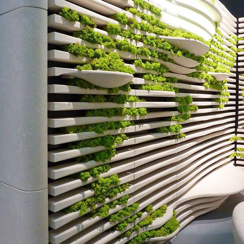Вертикальная фитостена. Это объемная цельная композиция, растения в которой помещаются в отведенные для них ниши. Зачастую это «зеленые» островки, которые размещаются на одном месте и не предполагают перемещения.