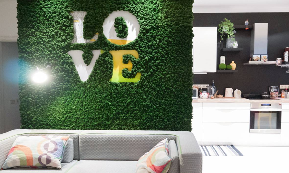 Стабилизированный мох — универсальный материал, который годится для отделки любой комнаты, для создания панно, часов, надписей, больших картин или облицовки целых стен. Прочие достоинства фитосырья таковы: