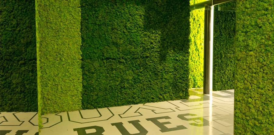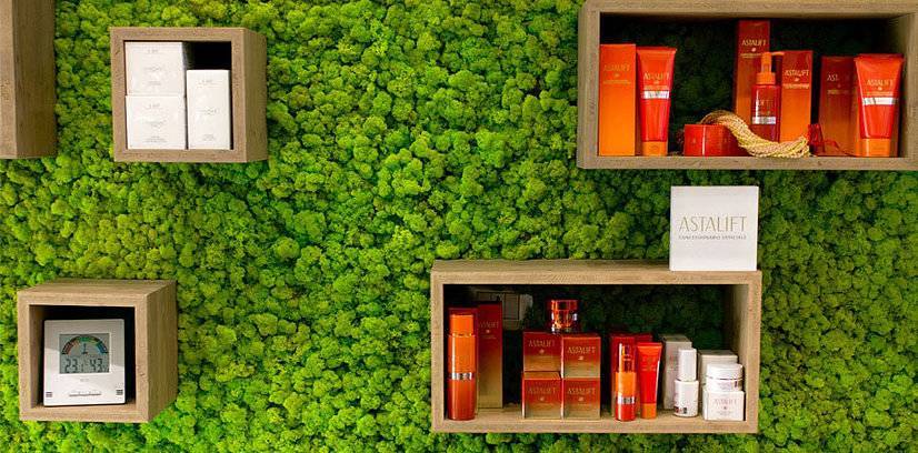 1) Фитостены из стабилизированного мха Это самый популярный способ использования данного декоративного материала отделки, стена в полностью оклеивается стабилизированным мхом.