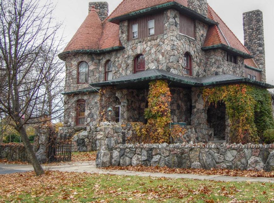 кладка «рондо» предполагает использование камней круглой и овальной формы (галька, обработанный кварцит), используется преимущественно для отделки отдельных элементов фасада;