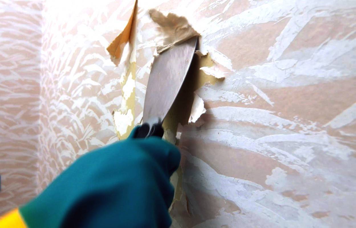 Бумажные легко размочить теплой водой, используя губку или меховой валик. Тщательно обработав одну полосу, через 10-15 минут можно поддеть ее край шпателем и снять со стены.