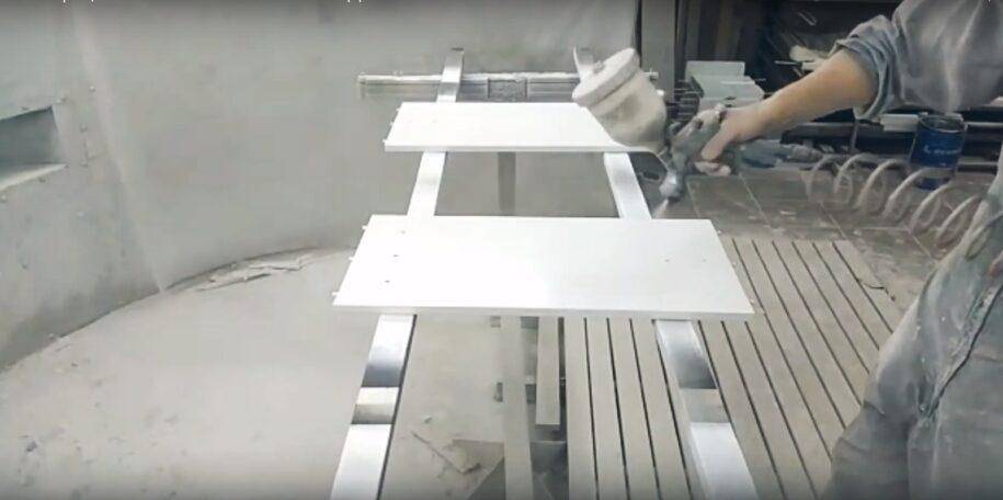 - кистью докрашивают те части ножек, перемычек, царг, которые не покрылись в первый раз.