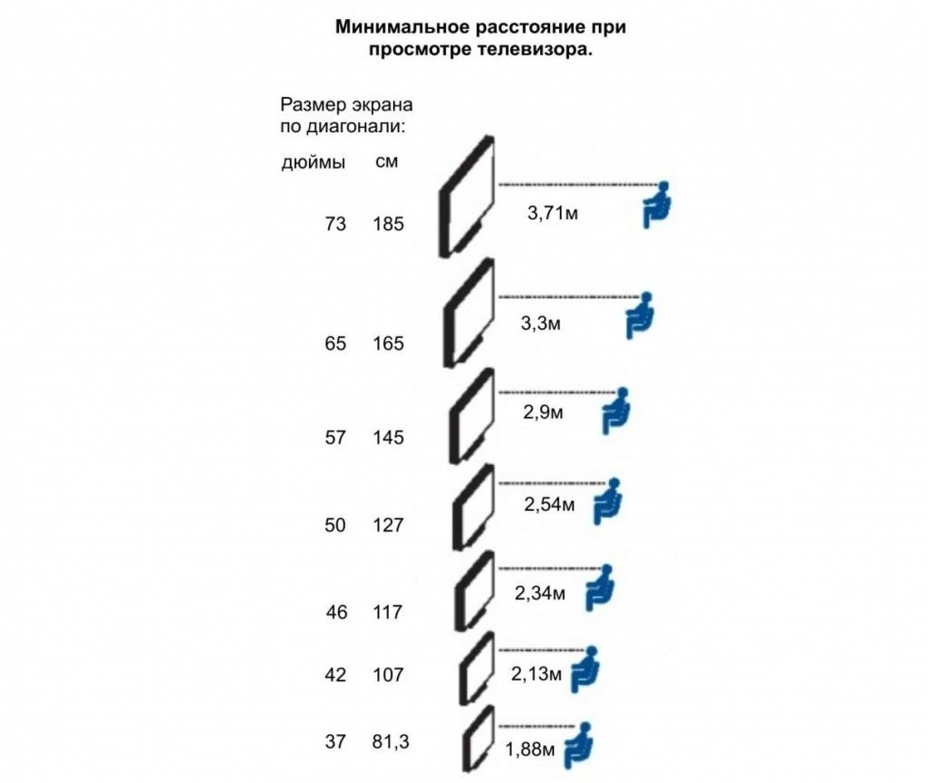 Раньше офтальмологи рекомендовали рассчитывать оптимальное расстояние от глаз зрителя до экрана. Оно вычислялось так: длина диагонали экрана, умноженная на 2. Но это подходило для старых моделей телевизора