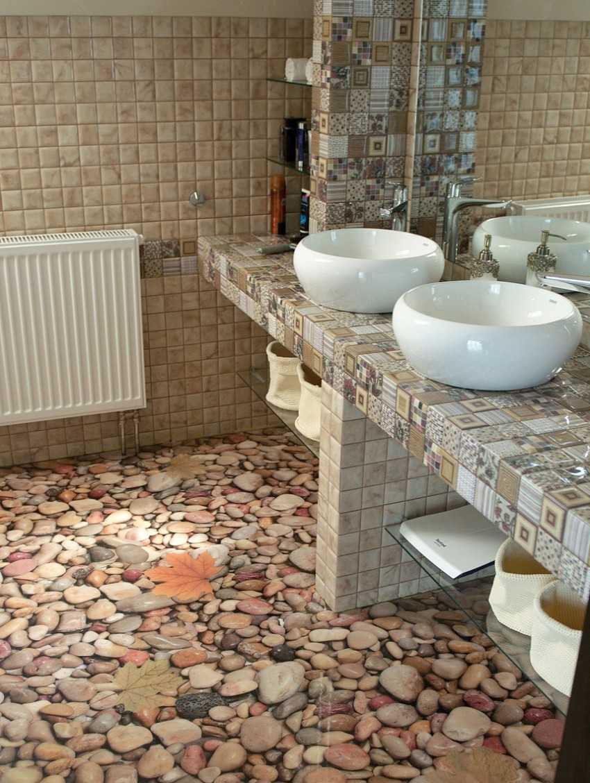 Как видите, наливной пол в ванной делается достаточно просто. Если вы хоть раз сталкивались с заливкой нивелир-массы (самовыравнивающейся стяжки), то изготовить полимерные 3d полы вам будет не так уж и сложно.