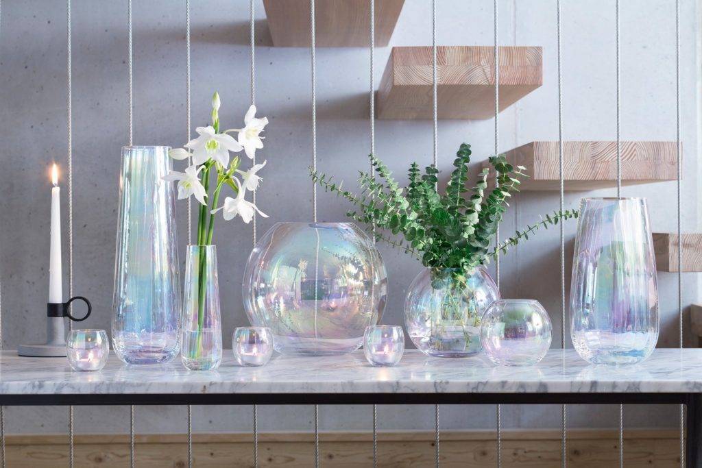 Это самый распространённый выбор покупателей, которые выбирают обыкновенную вазу для живых цветов, однако не все знают, что стекло изделия может быть не только бесцветным, но и матовым, расписным или цветным. Стеклянная ваза в интерьере смотрится нежно и неброско.