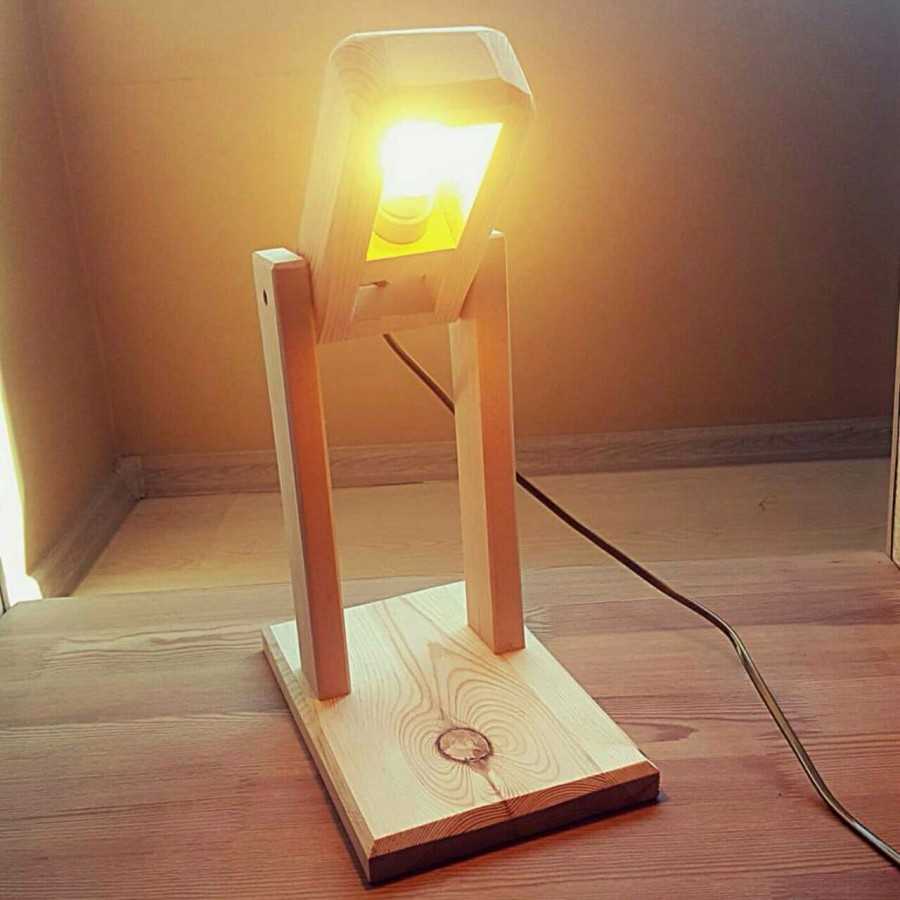 - Далее из древесных материалов выбирается наиболее массивный устойчивый кусок, который будет использоваться, как подставка для настольной лампы. В нем делается дрелью отверстие под шпильку, которая предварительно подрезается до необходимых параметров ножиком по металлу. Высота шпильки должна быть примерно на 5 см больше уровня камней, деревянных заготовок, сложенных друг на друга.