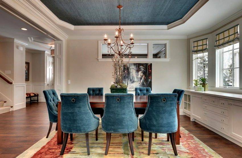 В зависимости от угла обзора, глаз видит разные оттенки, что ещё больше привлекает внимание жильца к такому потолку