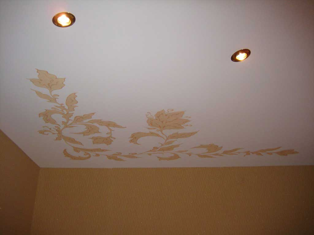 Есть у ткани и ещё одно интересное преимущество, о котором многие почему то забывают – это возможность потолочной росписи. Нет, не той модной сегодня фотопечати, которая хотя и смотрится превосходно, но отдаёт искусственностью, а именно росписью, возможностью создавать потолочные картины.