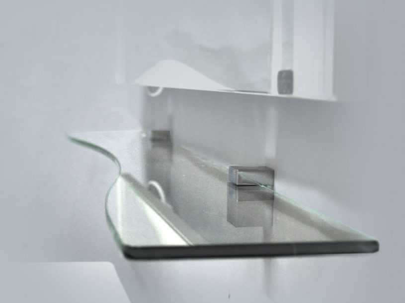 Стекло для полок отличается хорошей стойкостью к возникновению плесени и грибка. Оно легко моется специальными средствами для чистки. Ванная с таким полками приобретает эффект воздушности и парения на ней предметов. Стеклянная полка должна быть выполнена из закаленного стекла. Большую надежность придаст обрамление из дерева или металла.