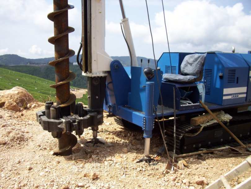 Способ 2: роторное бурение. Данный способ следует применять при наличии скальных грунтов. Для работы используют бурильную трубу, которая похожа на стакан, по краю которого располагается шарошечный долот. В трубе находятся специальные системы для бурения. Они а также сама масса конструкции оказывают большое давление на долото, благодаря чему он может пробивать довольно крепкие скальные грунты. Чтобы извлечь лишнюю землю, можно применять один из следующих методов: