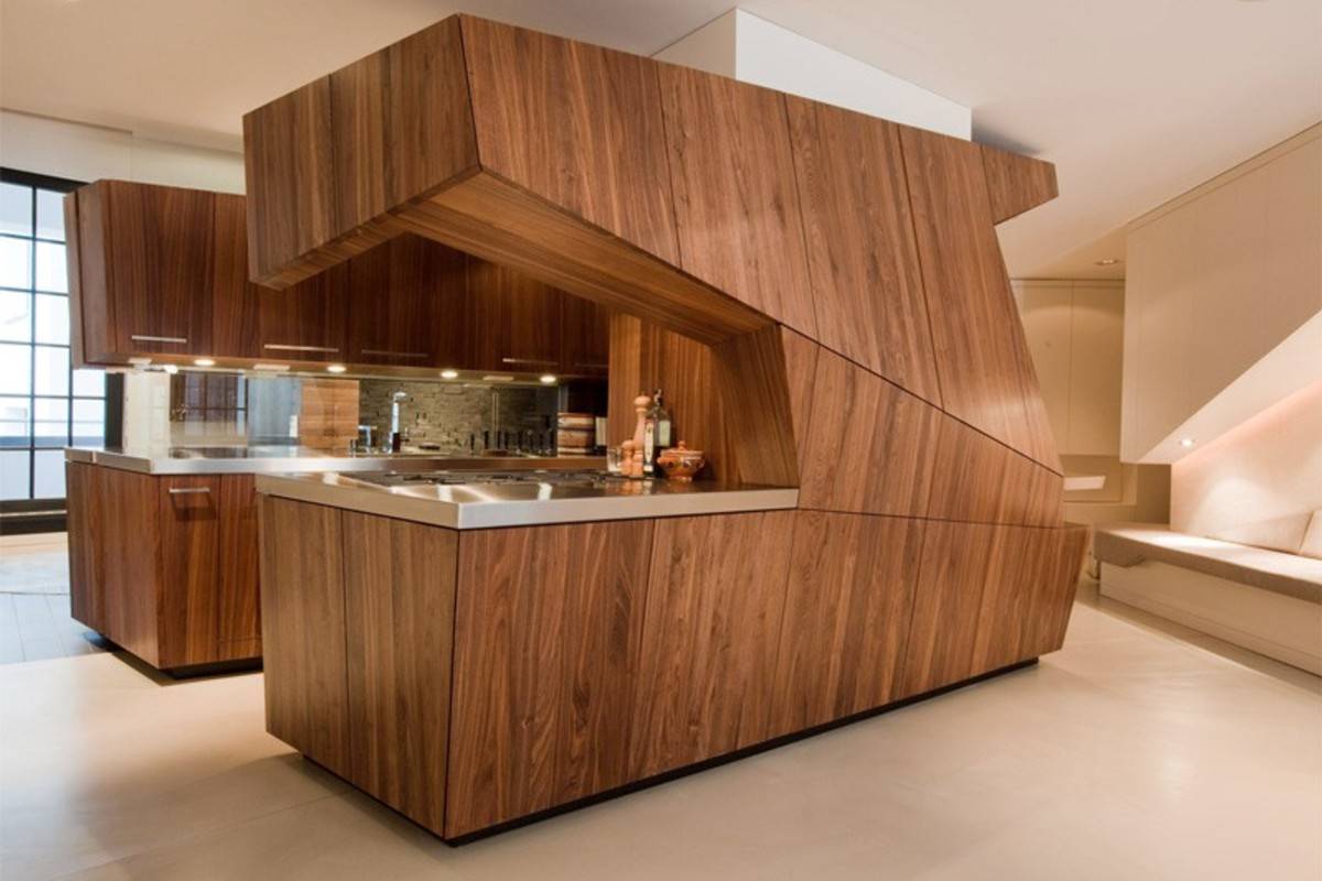 Нестандартная кухонная мебель отличается в первую очередь функциональностью. Можно спроектировать большую площадь рабочей поверхности, предусмотреть более удобную систему хранения кухонных принадлежностей и посуды чем у обычных кухонных гарнитуров.