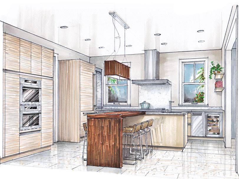 Первый этап создания мебели нестандартного формата — формирование ее образа у заказчика, выбор стиля, цвета, фактуры изделия. Затем идея прорабатывается более детально: определяются размеры, конфигурация, внутреннее наполнение. На этом этапе обычно к работе подключаются специалисты-дизайнеры. Создается эскиз изделия с учетом особенностей уже имеющегося интерьера комнаты, ее размеров, формы. Все эти данные вводятся в специальную компьютерную программу, позволяющую создавать 3D-изображения — подробные чертежи мебели, учитывающие не только ее параметры, но и особенности помещения, неровности стен, пола, расположение электропроводки, вентиляционных ходов, газопровода.