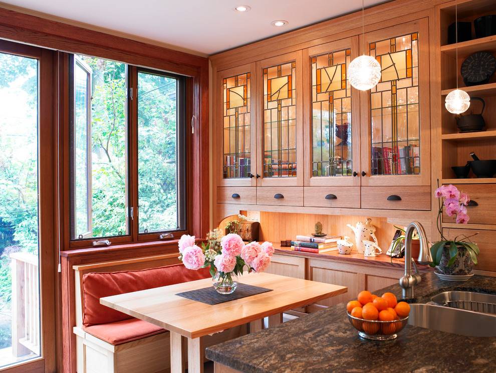 При наличии в помещении кухни недостатков планировки с помощью нестандартного гарнитура можно придать ей уютный вид. При индивидуальном заказе мебели для кухни можно самостоятельно выбрать дизайн, материал, наличие декоративных дополнительных элементов.