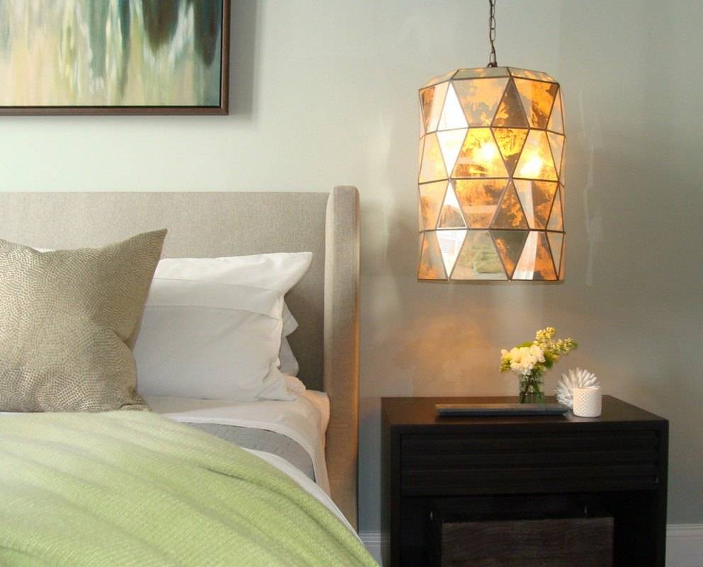 Настенные ночники, расположенные над головой или сбоку кровати, экономят пространство, но требуют более сложной установки. Если вы заботитесь о минималистском, современном характере интерьера и в то же время имеем достаточно просторную комнату, выбирайте подвесные светильники для спальни.