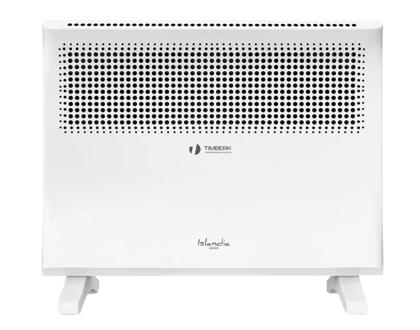 Это мощный обогреватель, конвекторного типа, генерирующий 1000 Вт, чего хватит для просторной ванной с площадью 10-15 м². Модель оснащена электронным управлением и термостатом. В правом верхнем углу предусмотрен цифровой экран и кнопки регулировки температуры. Пользователи в отзывах делятся, что разобраться в настройках очень легко и все получится освоить без инструкции. Крепится обогреватель на стену в ванной комнате, но в продаже к нему есть ножки (за отдельную стоимость), поэтому конвектор можно сделать мобильным. Работать обогреватель способен в трех режимах. Из защитных функций присутствуют: отключение при перегреве и поддержание положительной температуры на случай, когда пользователи надолго уехали из дома.