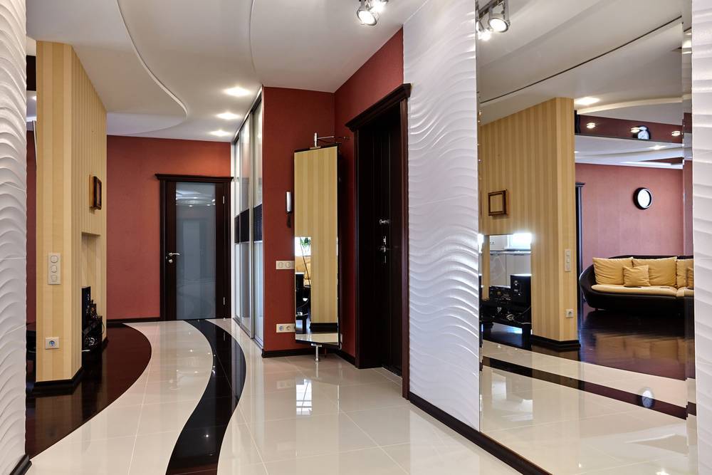 Они привлекут к себе внимание, приблизив стену, на которой находятся. Такие вставки хорошо смотрятся в длинных узких коридорах на стенах, противоположных входной двери.