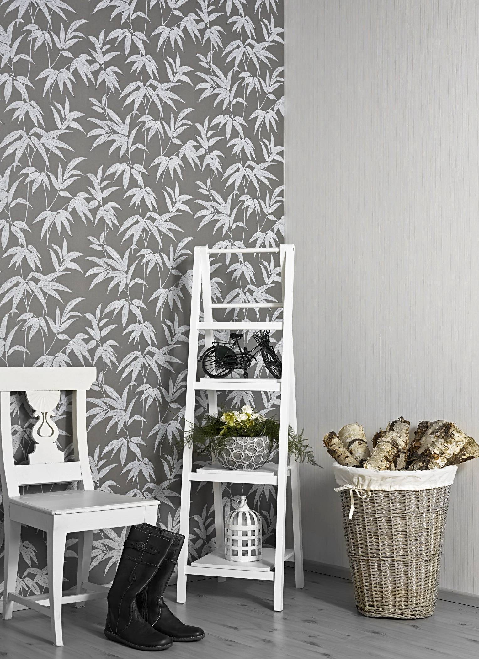 Прекрасно подобранные оттенки: темные однотонные обои внизу совпадают с мотивом на светлых.