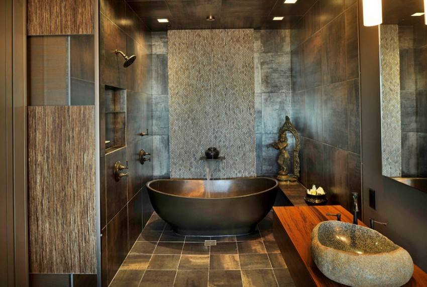При комбинировании материалов нужно постараться создать гармоничный интерьер, выдержанный в одном стиле, поэтому не используйте слишком много оттенков и разных рисунков в одном помещении, и помните об основных свойствах цветов. Светлые оттенки зрительно расширяют помещение, а яркие и темные действую наоборот, поэтому первые подходят для маленьких ванных, а вторые – для просторных, чтобы сделать их более уютными.