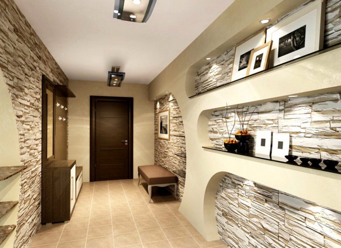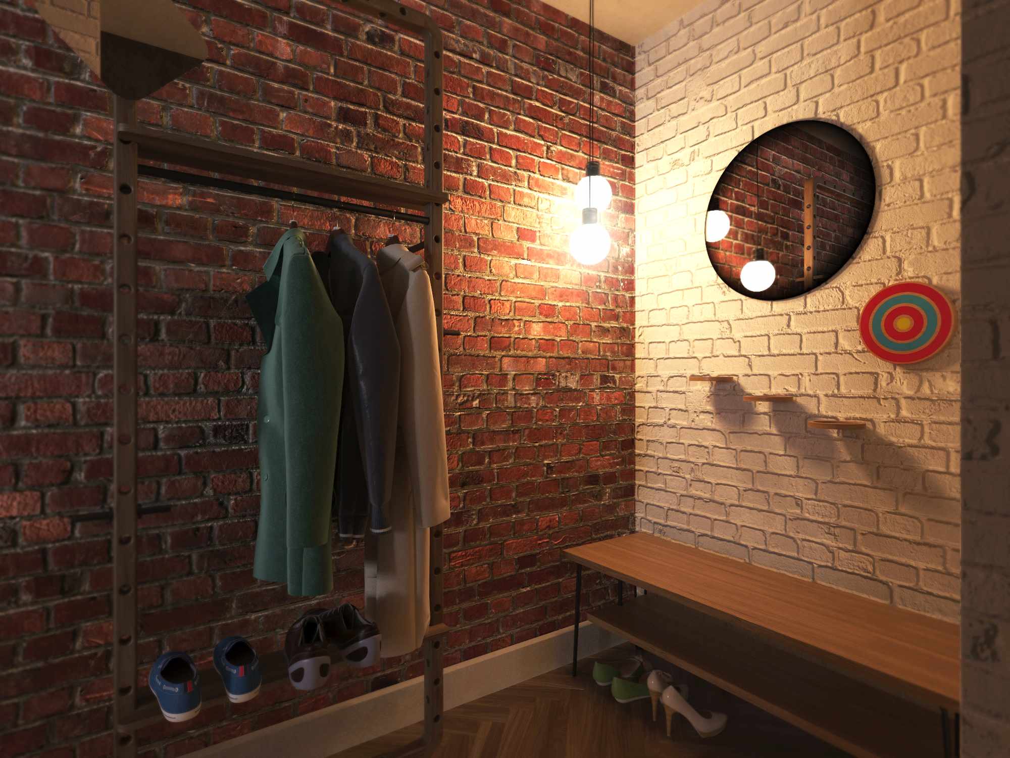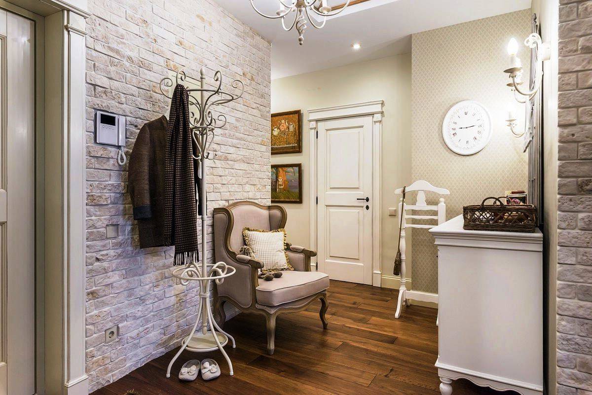 Чтобы отделка кирпичом в прихожей смотрелась максимально естественно и привлекательно можно использовать фактурную штукатурку.