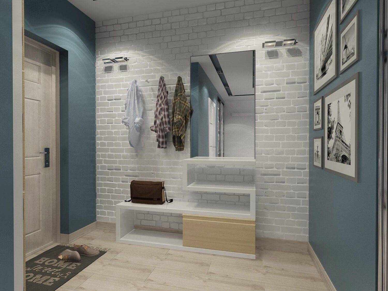 В дизайне коридора используются белые кирпичные обои под покраску. Преимуществами данного типа покрытий будут возможность обновления палитры и изменение цвета полотен. Как смотрятся такие обои в прихожей, смотрите на фото.