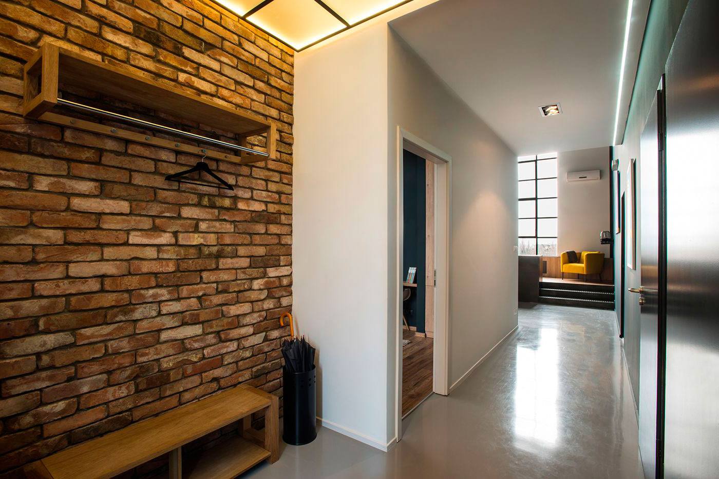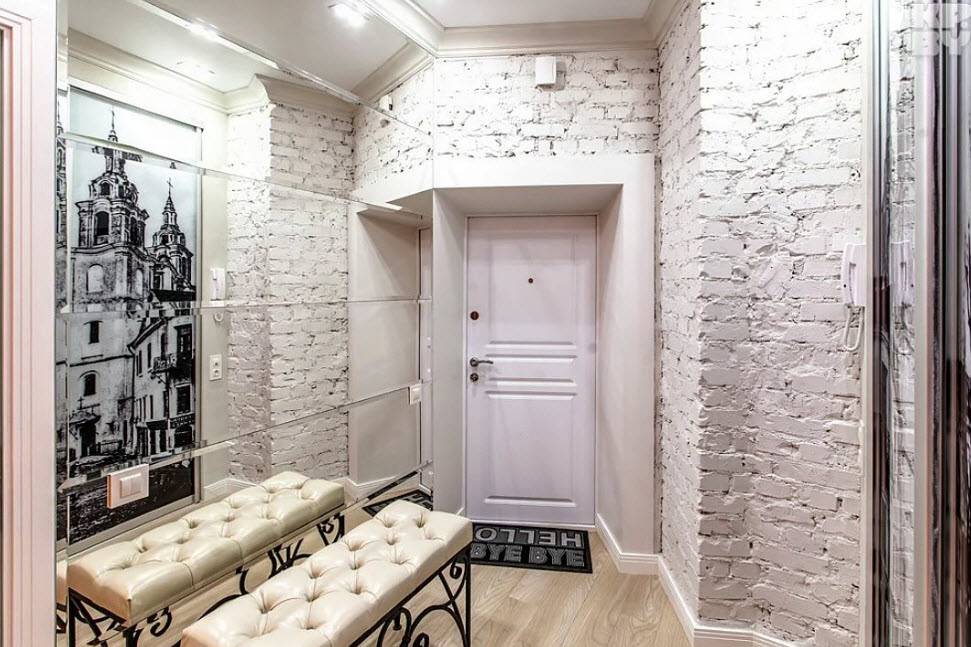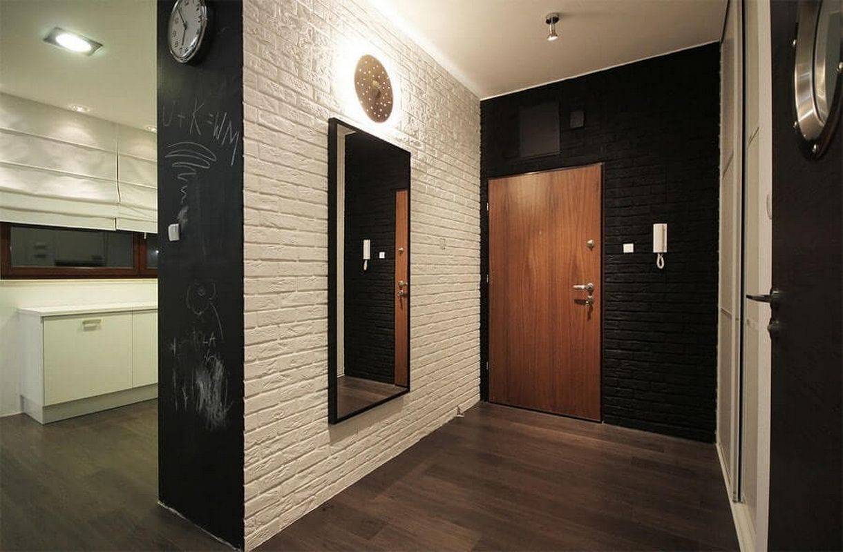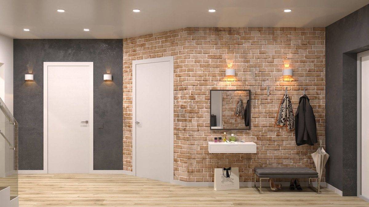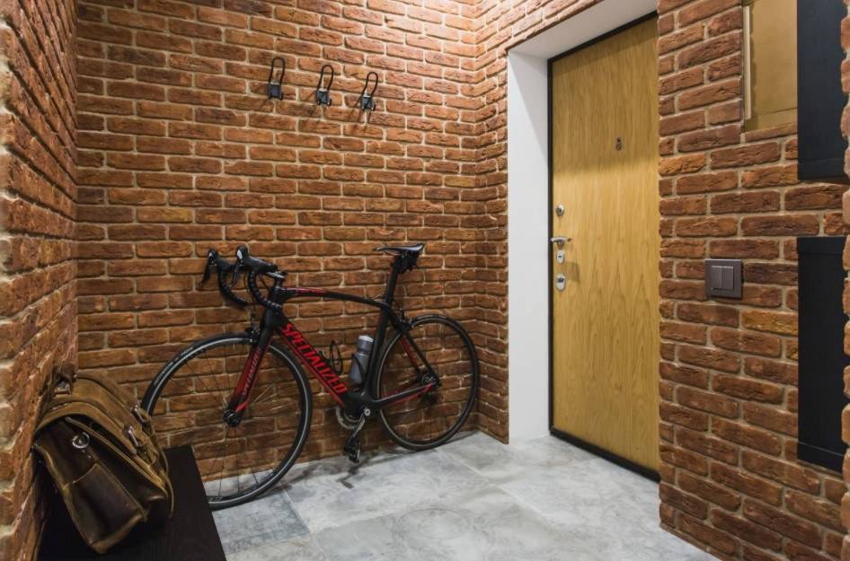Обои с имитацией кирпича часто применяются в оформлении коридора. Интерьер прихожей можно визуально расширить, применив обои светлого цвета. В этом помещении зачастую нет естественного источника освещения, поэтому для отделки категорически нельзя использовать обои с темными кирпичиками.