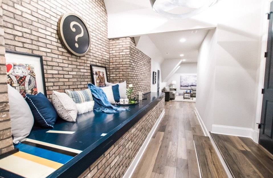 Необычный декор — кирпичная стена превращается в оригинальную отделку.