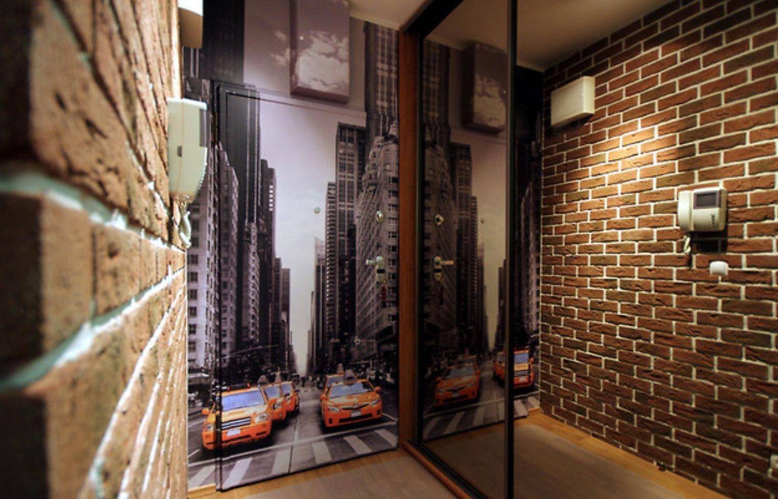 - Удачным решением для больших, хорошо освещенных прихожих, станут насыщенные оттенки. Специалисты рекомендуют использовать такие сюжеты как города, пейзажи.