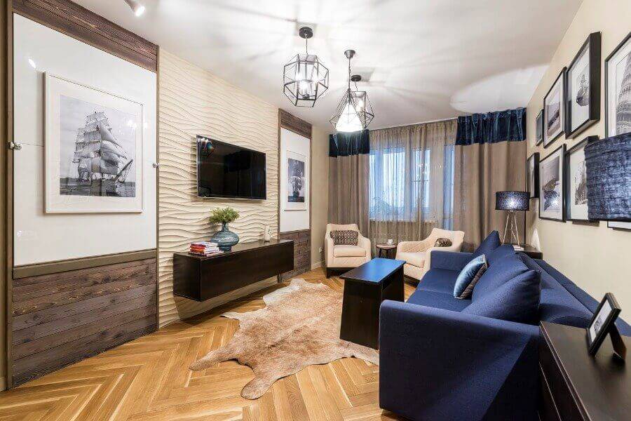 Для интерьера зала в этом году выбирают модные, стильные и изысканные цвета, а также их эффектные и гармоничные сочетания. Среди трендовых оттенков нежные кремовые, чувственный пурпурный, элегантный оливковый, невероятно сочный и теплый оттенок под названием «манговый сорбет», глубокий атлантический синий – золотая середина между светлым и темным синим цветом, натуральный коричневый, ассоциирующийся с шоколадом, холодный и приглушенный темно-зеленый под названием «зеленый кварц», а также удивительный темно-оранжевый, бежево-золотой, нежный оттенок розово-малинового.
