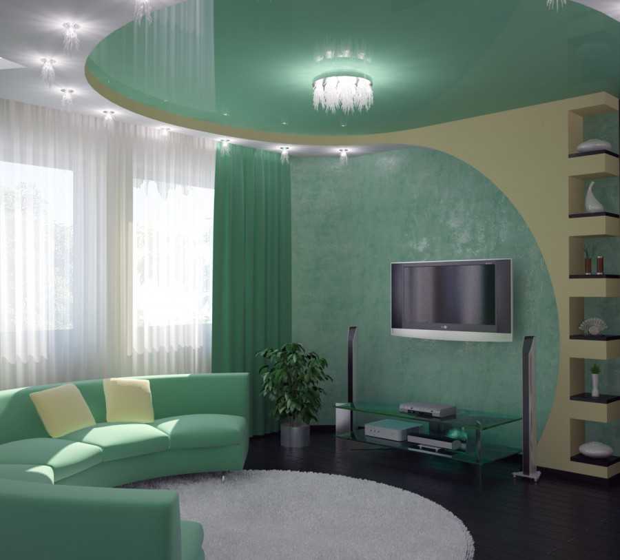 - Для оформления закругленных углов желательно выбирать потолочные покрытия с более жесткой и плотной текстурой.