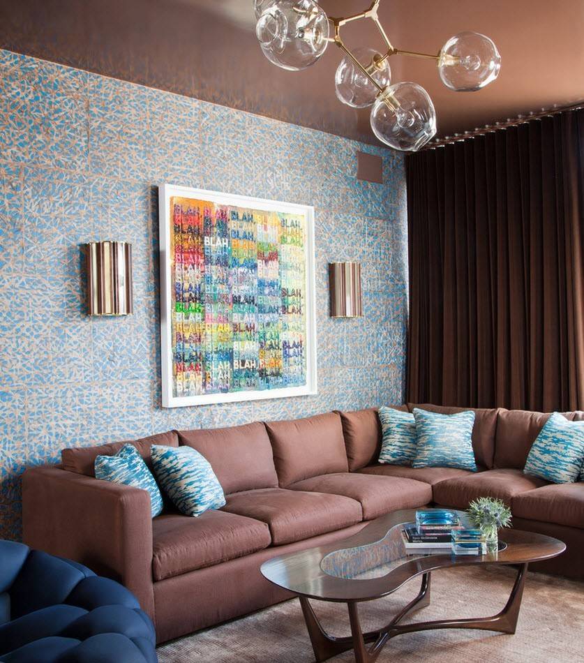 Они дарят помещению уют и тепло, прекрасно сочетаются с белыми, желтыми, зелеными, голубыми элементами декора. Светло-коричневые обои изящно разбавят темную мебель.