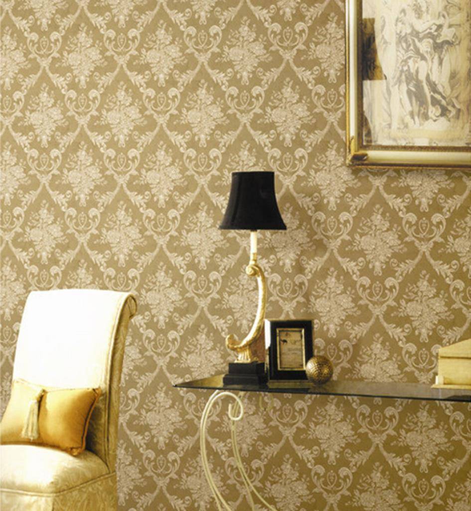 роскошь, элегантность и торжественность стиля вы сможете подчеркнуть, выбрав золотые обои с цветами;