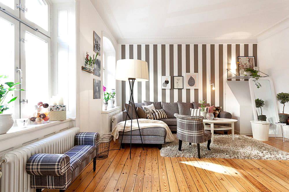 - горизонтальные полоски расширяют пространство, используйте их на коротких сторонах в узких прямоугольных помещениях;