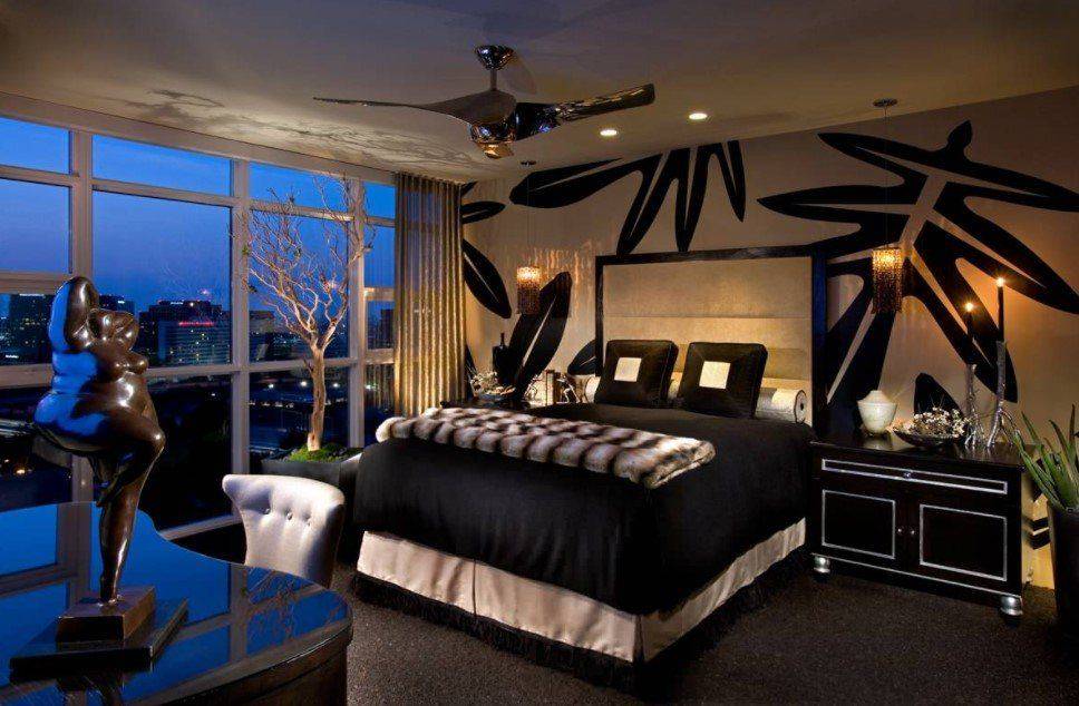 Чёрный цвет, не смотря на некую мрачность и глубину, прекрасно очертит форму комнаты и создаст уют. В спальнях с небольшой площадью дизайнеры советуют подчеркнуть общую композицию при помощи нескольких чёрных предметов. Для больших помещение подобный цвет может использоваться для оформления одной или пары стен. Чередование тёмных и светлых серых оттенков позволит расширить пространство, а дополнении в виде нескольких ярких деталей создадут очень интересный визуальный эффект.