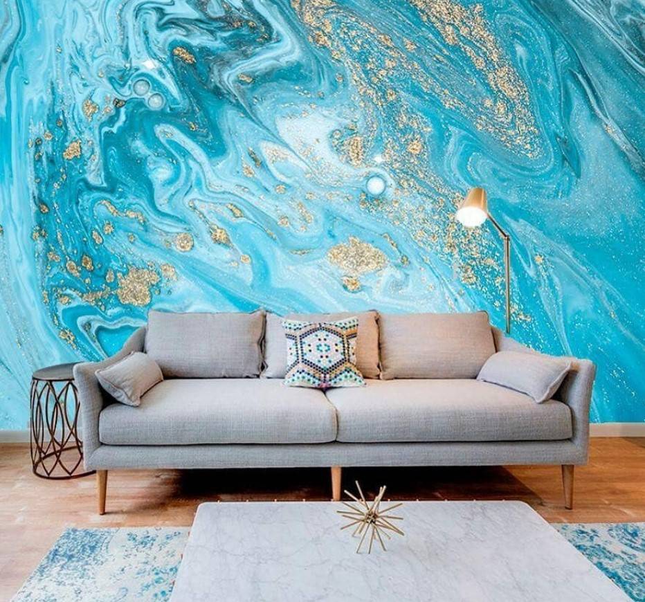 - Оппонентом минимализма с металлическими узорами становится максимализм, которому свойственна яркость, даже буйство красок. Дизайн обоев 2021 года такого плана это причудливая комбинация колеров, что внешне похоже на случайно опрокинутую акварельную палитру.