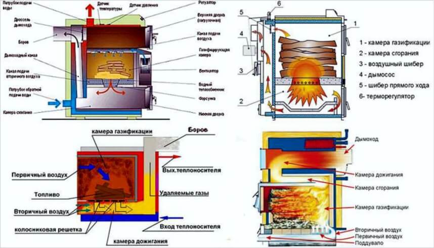 Работают такие агрегаты на любом твердом топливе. Они мало эффективны, поскольку не имеют развитых поверхностей нагрева. Это приводит к тому, что в них большие потери тепла с уходящими газами, порядка до 20 %.