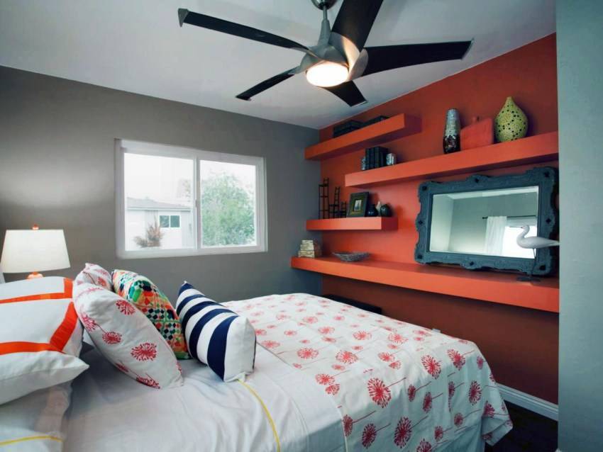 Акцентируется внимание на одной из стен. Для этого ее окрашивают в определенный цвет, оформляют с использованием различных предметов.