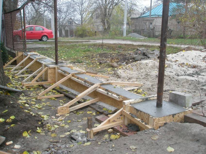 Создание дополнительных упоров в виде распорок обеспечивает внутреннюю жесткость щитов опалубки. Раскосы в виде устанавливаемых под углом деревянных брусьев или обрезков доски не дают возможности разваливаться доскам опалубки наружу. Сочетание упоров и раскосов создает достаточную жесткость и надежность оградительной системы, способной выдержать сильный напор заливаемой бетонной смеси.