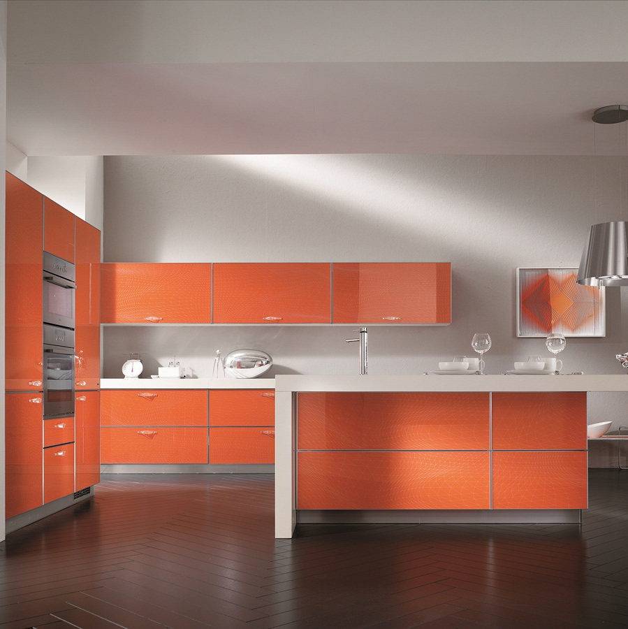 - Разнообразие оттенков оранжевого позволяет подобрать подходящий цвет для кухонного гарнитура.