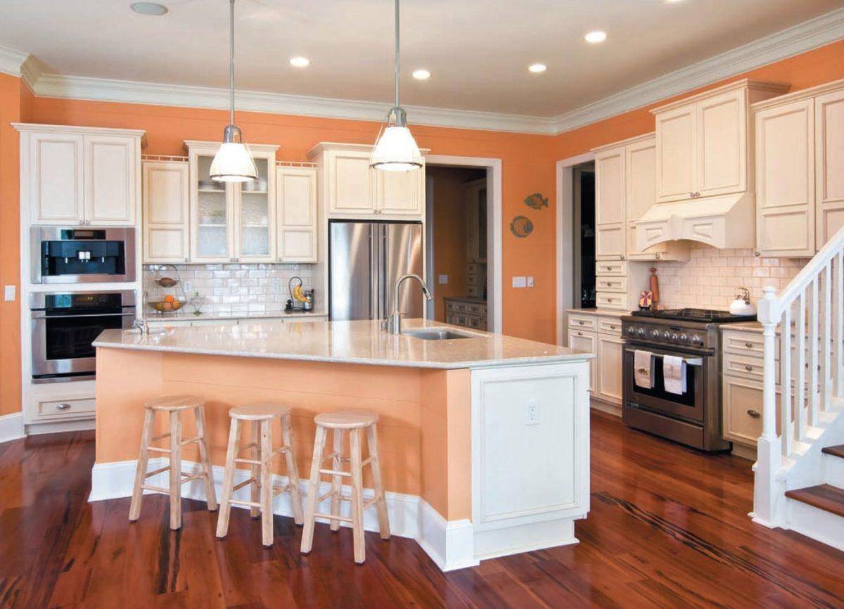 Обладатели большой кухни могут себе позволить апельсиновый цвет, морковный.