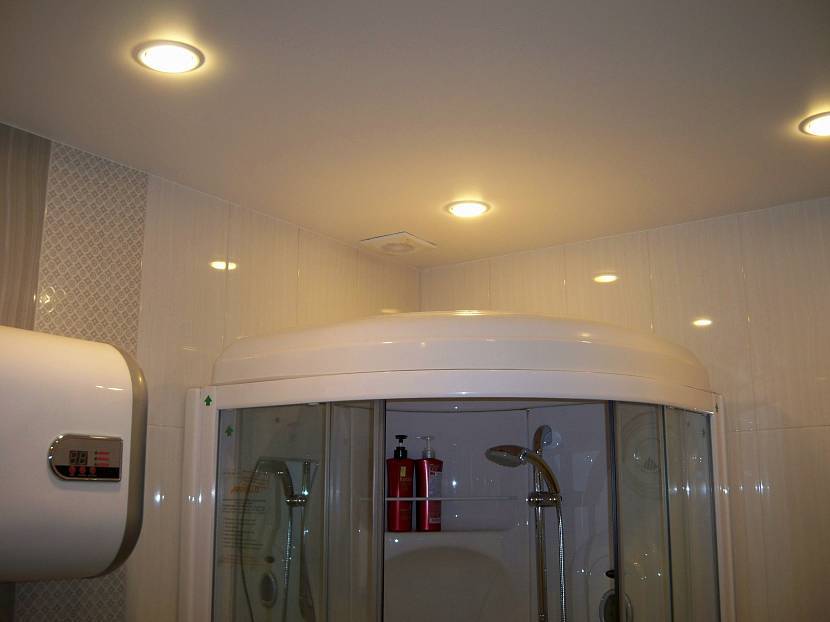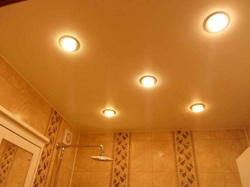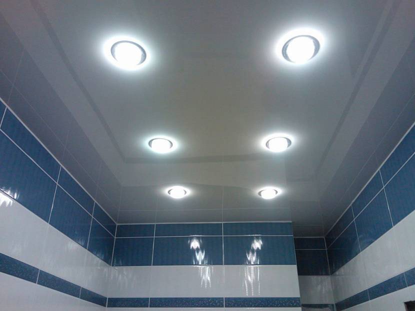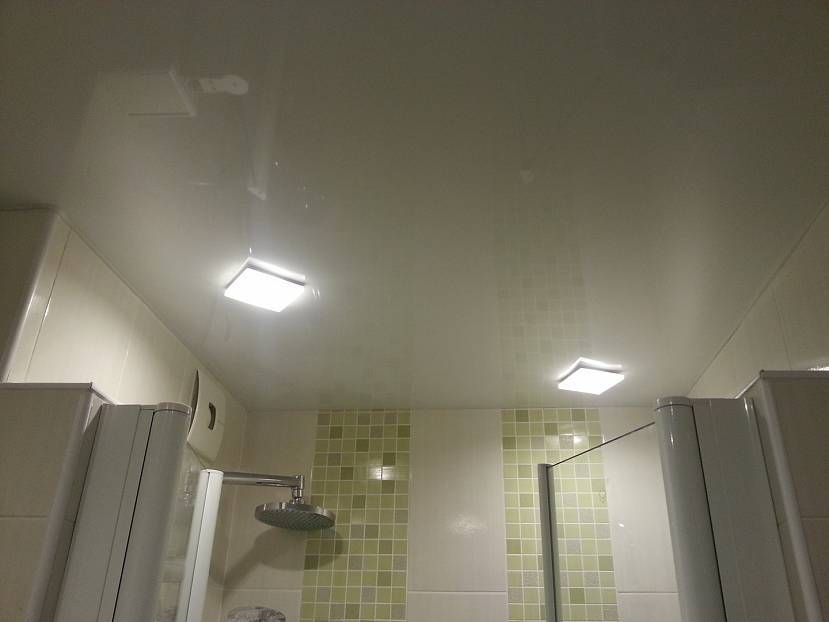 В ванной с натяжным потолком из пленки ПВХ приходится учитывать не только перечисленные выше параметры, но и энергопотребление светильника (и, соответственно, его тепловыделение).