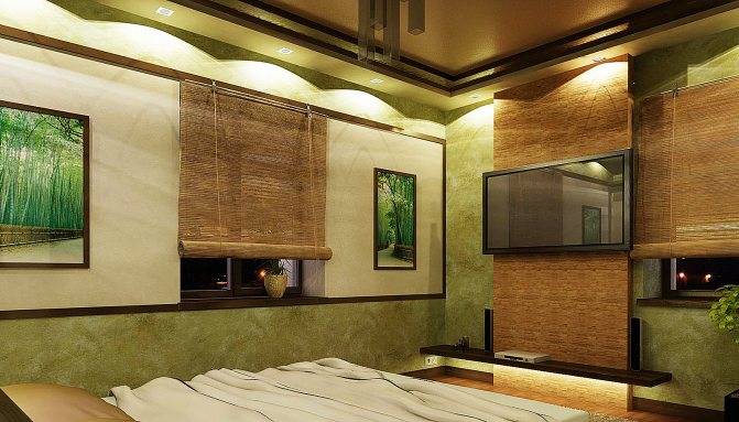 Обои – это бамбуковые рейки, наклеенные на марлевую основу или рисовую бумагу. Цветовая гамма обоев широка, они бывают однотонными, либо могут иметь природный рисунок.