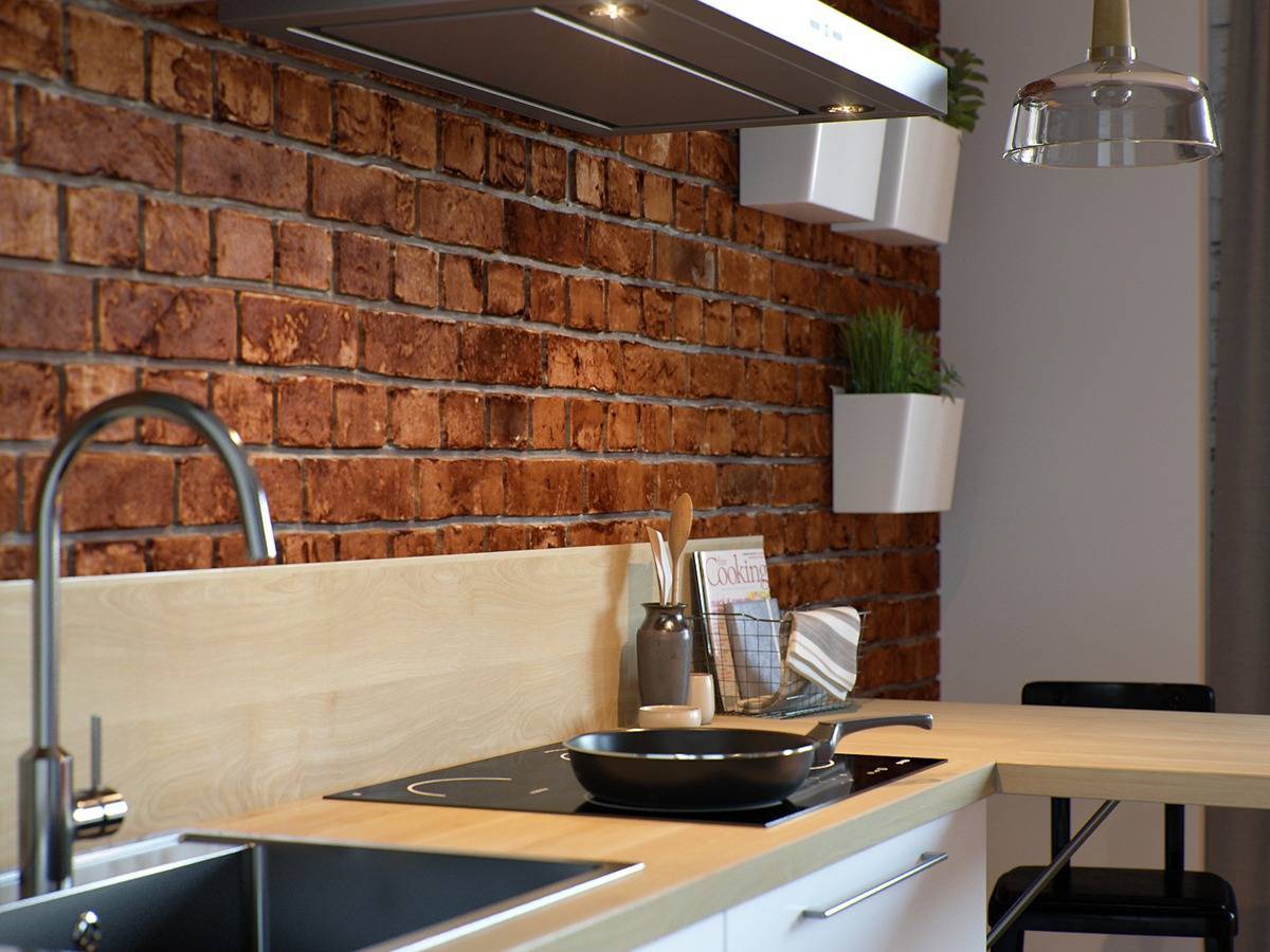 Это классика кирпичной отделки: в историю она вошла именно с этим стилем. Правда, в оригинальных лофтах камень был настоящим (краткая справка: лофт – производственное помещение, переоборудованное под жилое).