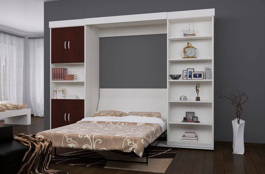 Шкаф-кровать – самый практичный выбор, он хорошо дополняет любую комнату: гостиную или кабинет. А расположение вдоль стены позволяет экономить большую часть комнаты. Тип крепление и ориентация может выбираться исходя из пожеланий и особенностей помещения.