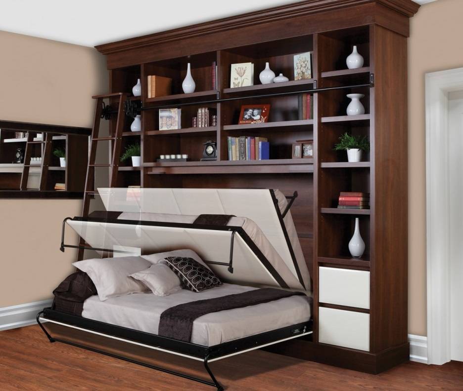 Горизонтальные откидные кровати чаще применяются там, где необходимо больше свободного пространства в разложенном состоянии.