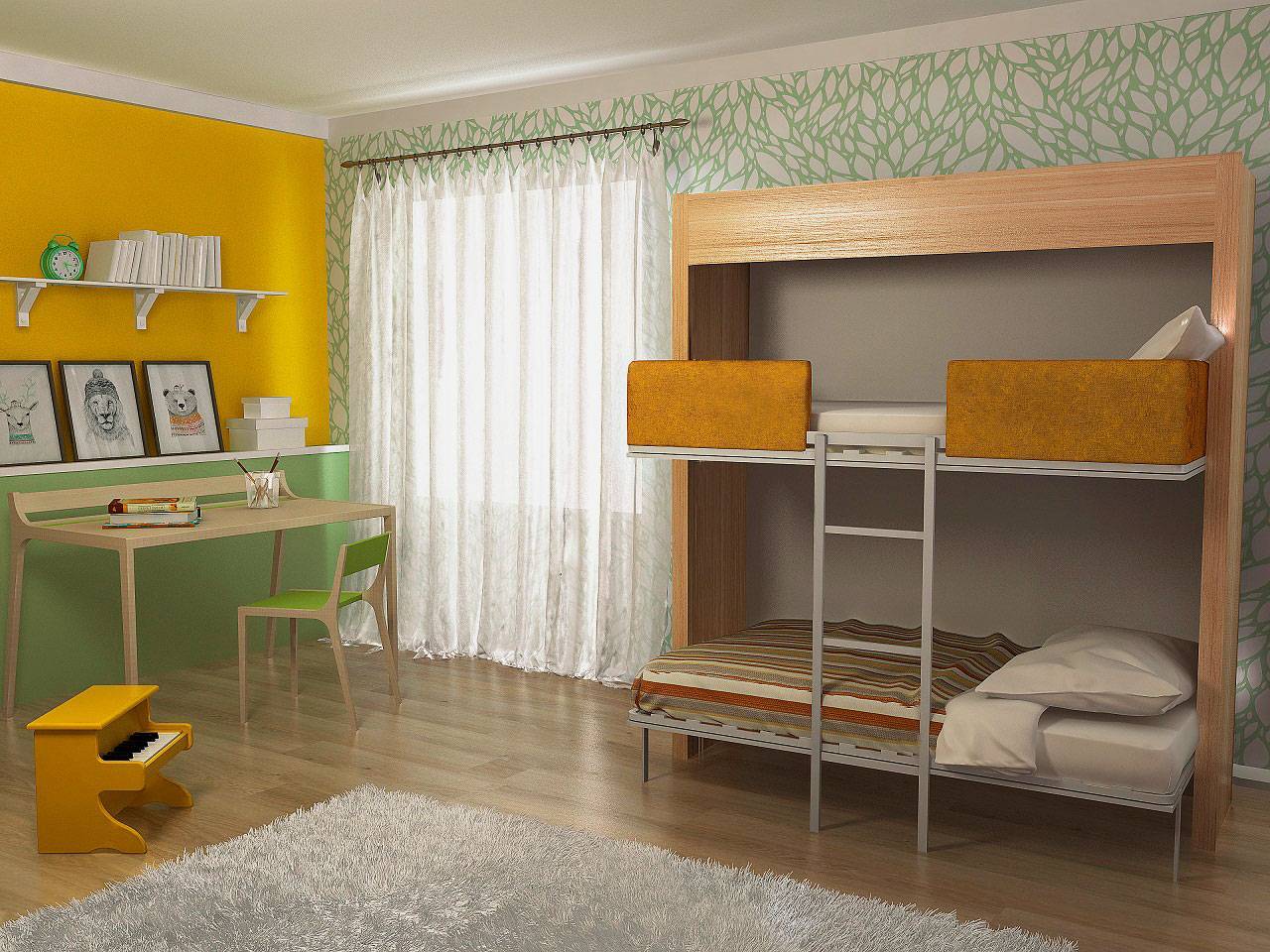 Чаще всего используются для меблирования комнаты двоих детей, но подойдут также для обустройства спальных мест двух взрослых людей. В одних моделях верхний ярус убирается, так же, как и нижний, механизм трансформации используется горизонтальный. В других — второй этаж не трансформируется, находясь в одном и том же положении. В многодетной семье такая мебель будет идеальным вариантом