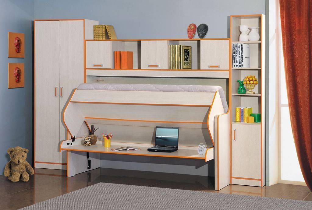 - многофункциональность – на нескольких квадратных метрах можно обустроить спальное место и систему хранения, а шкаф-кровать трансформер со столом для подростка – это еще и полноценный рабочий уголок;