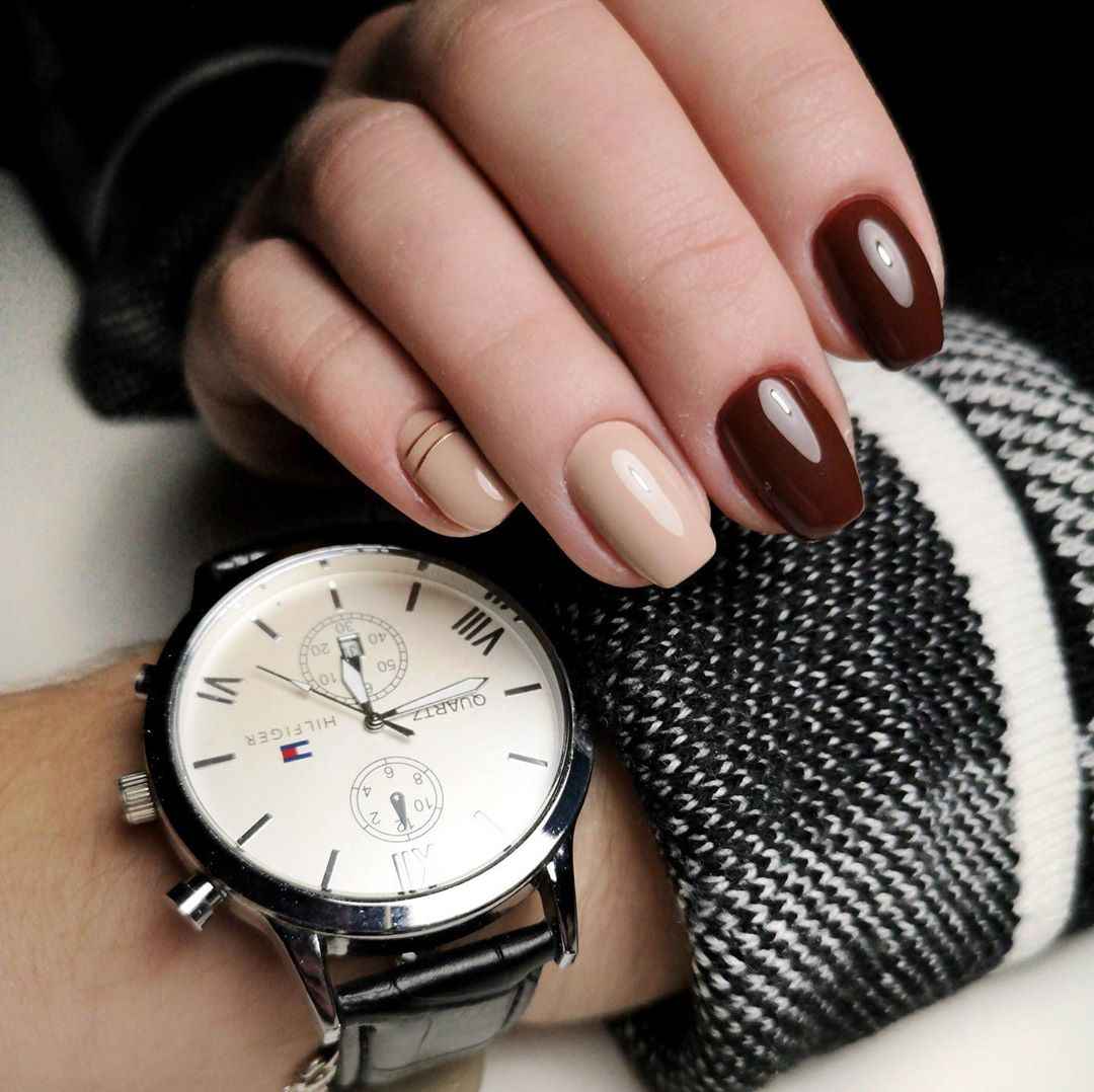 Сочетание коричневого маникюра с другими цветами