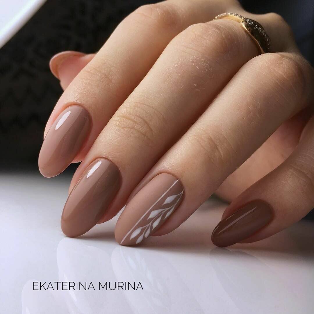 Если не хотите усложнять нейл-арт, то выполняйте монохромный маникюр с чередованием коричневой и белой окраски ногтей. Прекрасно смотрится однотонный нейл-арт, дополненный стразами или «яйцами» в прикорневой зоне.